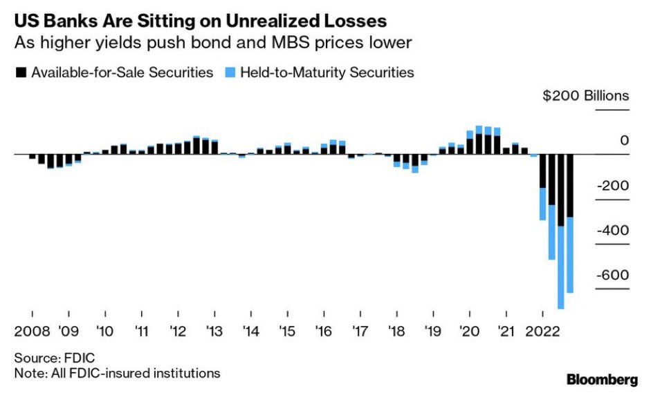 Unrealized losses of U.S. banks to date, estimated at $600 billion by the Federal Deposit Insurance Corporation (FDIC)
