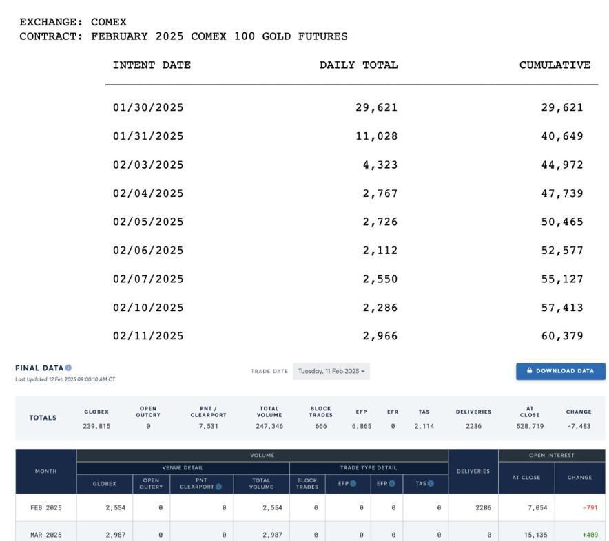 As a reminder, gold deliveries on the COMEX for the February 2025 maturity (EB25) have now exceeded 60,000 contracts and are likely to reach a record of over 70,000 contracts, or more than 200 metric tons of gold: