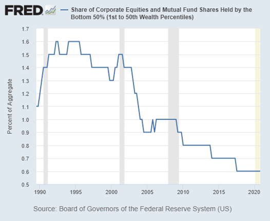 As the graphs below show, the bottom 50% hold 0.6% of corporate equities and Mutual Funds whilst the top 1% hold over 52%.