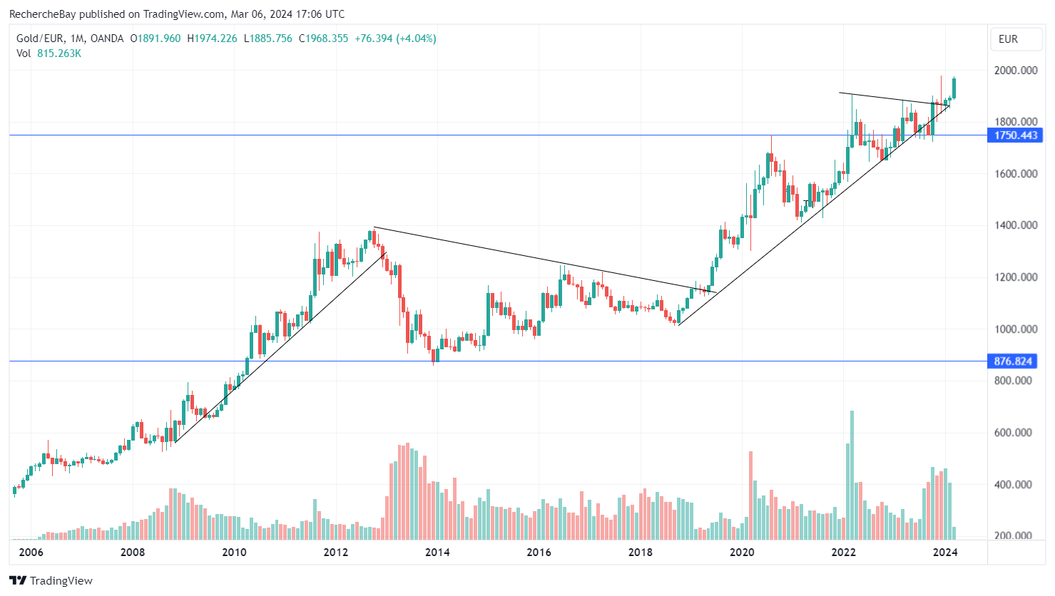 In recent weeks, the press has hailed the performance of European stock markets. However, a comparison with gold's performance over the past decade reveals a different picture: the CAC 40, measured in gold, has been languishing at -60% since 2008, while the DAX is also in the red when measured in gold.