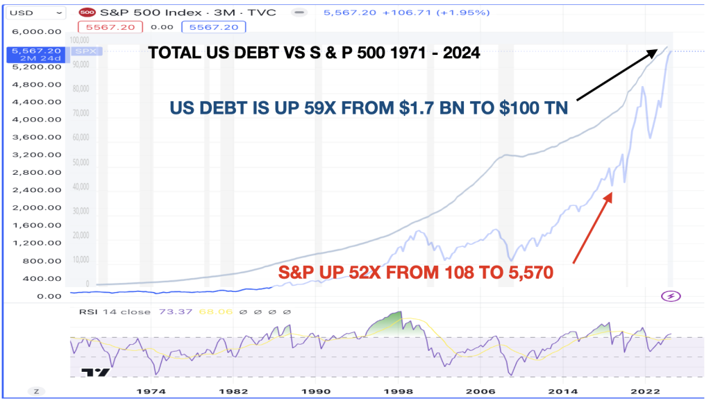 The graph below shows US total debt going from $1.7 billion in 1971 to $100 trillion today.