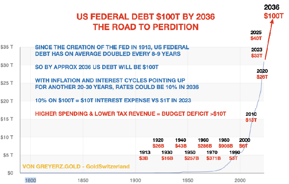 Debt today $35 trillion rising to $100 trillion by 2034.
